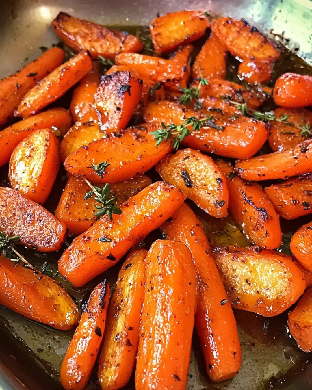 - Combine and Serve: Once the carrots are roasted, transfer them to the saucepan with the honey butter glaze and stir to coat. Garnish with fresh thyme or parsley if desired. Serve warm.